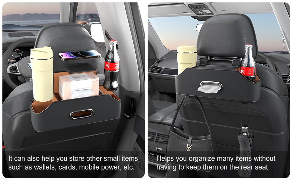 Tired of spilled drinks, lost toys, and cluttered car seats? Our multifunctional backseat organizer keeps everything in place with cup holders, tissue storage, and hooks – making road trips, school runs, and daily commutes neater and stress-free!